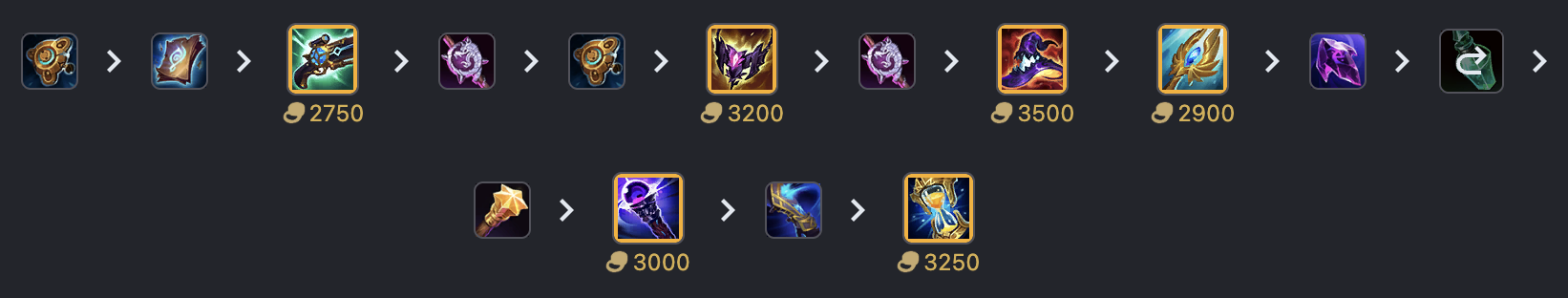 베이가는 지속딜보다는 폭딜 템트리가 좋습니다. 횃불보다는 루덴을 추천드려요. 이후에는 주문력이 높은 아이템 위주로 가주세요. 생존이 중요하다면 존야를 가고 필요 없으면 깡 주문력 템으로 가주세요.