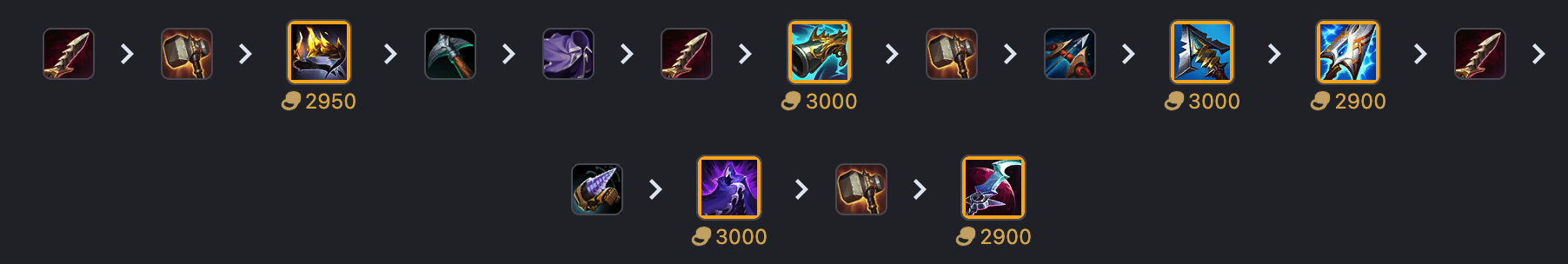 템트리 순서는 그렇게 중요하지 않지만 참고해주세요. 가장 중요한 부분은 돈이 되는대로 최대한 템을 짜내는 부분입니다.